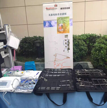 活動現場我司展示了精細、全面的耳鼻喉科手術器械,多功能大功率的集鼻刨削、耳打磨為一體的手術動力操作演示以及德國海涅高品質的手術頭燈放大鏡試戴。麥迪康耳鼻喉科手術器械,精細、微創、全面完成各種專科手術;諾瓦格的手術動力功率大,轉速可達到80000轉,效率高,集鼻刨削與耳打磨為一體,性價比同行業最高,尤其多種鼻刨削刀頭,完美完成手術;德國海涅高品質的LED頭燈放大鏡,集頭燈及放大鏡一體,亮度不損傷眼睛,放大效果明顯,是耳鼻喉科醫生的好幫手。