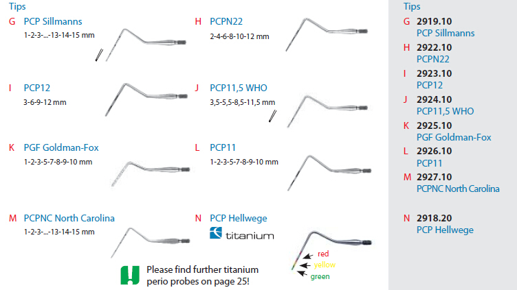 With extra fine, sharp points for diagnosing tartar or concretions, caries, uneven surfaces